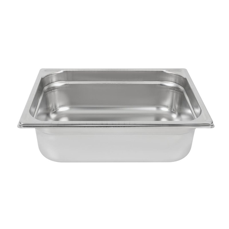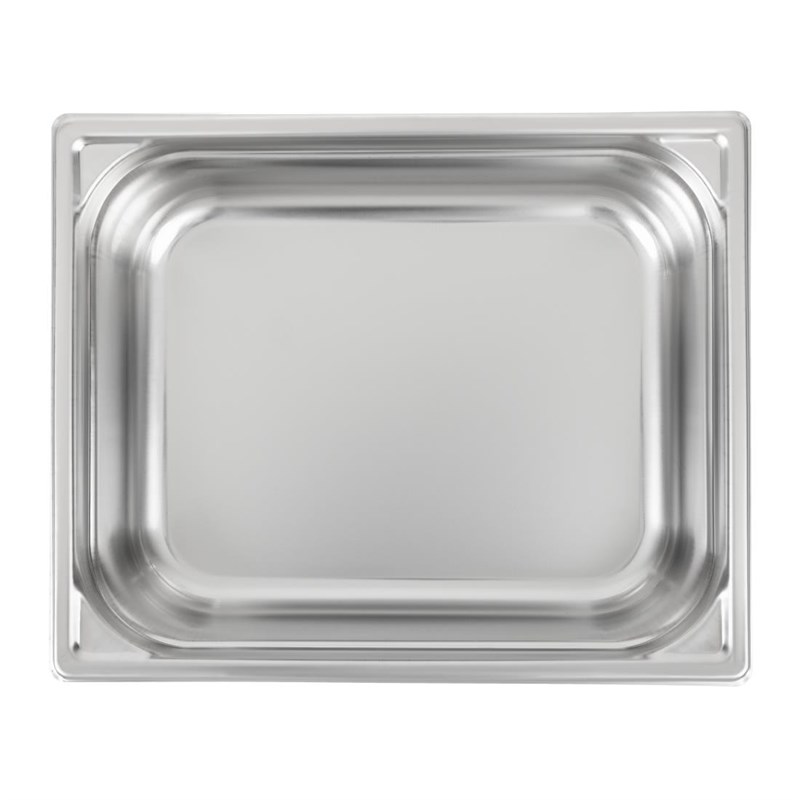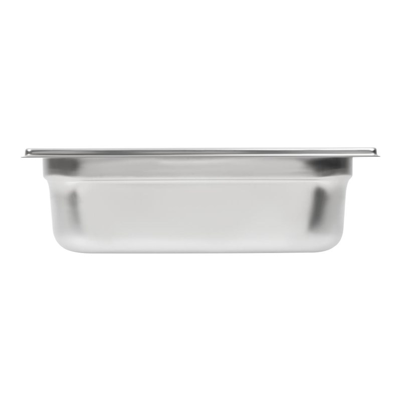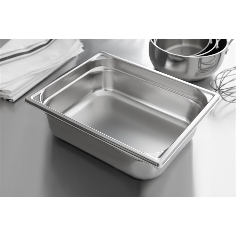 Topkwaliteit RVS Gastronorm bak. De versterkte randen voorkomen dat de bak beschadigt en zorgen dat de bak lang meegaat. Voldoet aan Europese norm EN631.