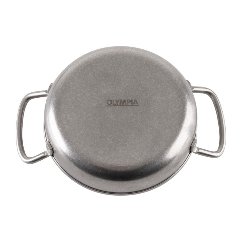 Voeg een creatieve tint toe aan je tafelservice met deze RVS serveerschaal met dubbele handgreep van Olympia. Het vintage-stijl ontwerp maakt hem perfect voor het presenteren van alle soorten eten, van voorgerechten en bijgerechten tot desserts en kleine porties.
