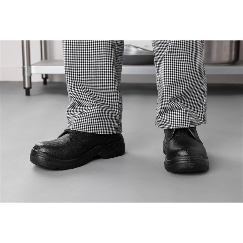 Nisbets Essentials werkschoenen zijn breder dan gewone schoenen en zijn daardoor veilig en comfortabel. Mocht u een tussenmaat hebben, dan wordt een kleine maat geadviseerd. Heeft u hulp nodig bij het vinden van de juiste maat? Raadpleeg dan de 'Omrekentabel' voor meer informatie. Verkrijgbaar in de maten 36 t/m 50.