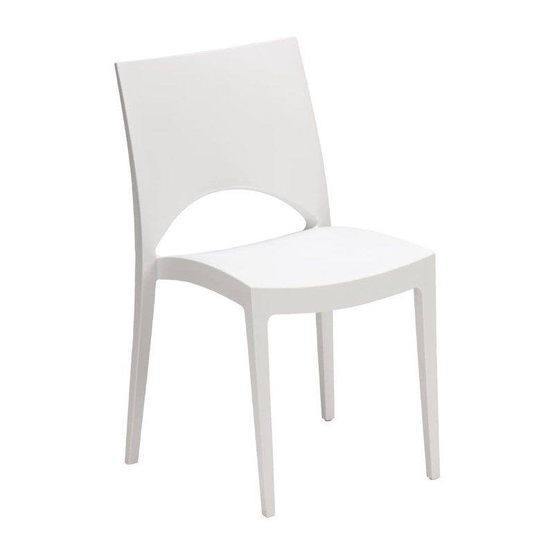 Deze trendy stapelbare stoel zit comfortabel, is gemaakt van 100%polypropyleen en is UV en waterbestendig. De stoel is zowel binnen als buiten te gebruiken. Door de opening aan de achterzijde blijft er geen water in de zitting staan.