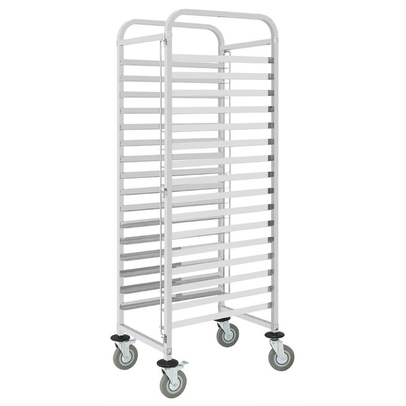 De Vogue regaalwagen met 16 niveaus voor patisserieplaten combineert professionele functionaliteit met een zeer duurzaam ontwerp, en biedt betrouwbare opslag en transport voor een maximum van 16 patisserieplaten van 600x400mm. De wagen is gemaakt van hoogwaardig RVS en is gebouwd om de eisen van drukke bakkerijen, cafés en patisseriekeukens te weerstaan terwijl delicate desserts perfect georganiseerd blijven.