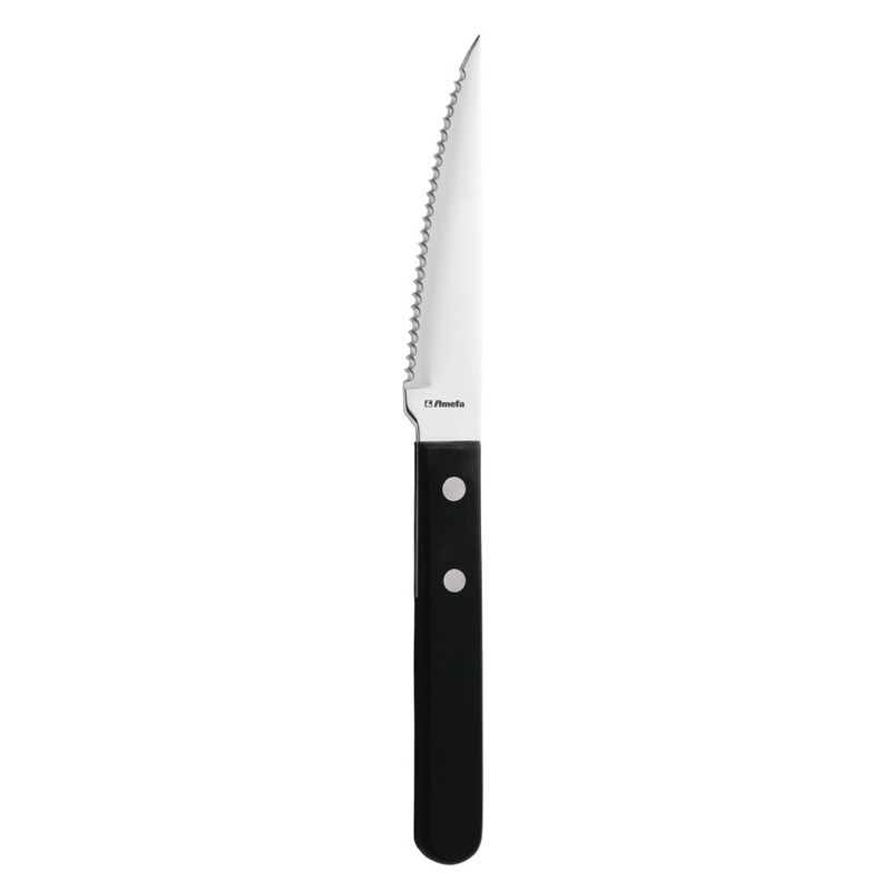Dit traditioneel gevormde steak-/pizzabestek van amefa heeft een geklonken handvat. Een sterk en duurzaam bestek, gemaakt van 18/10 RVS.