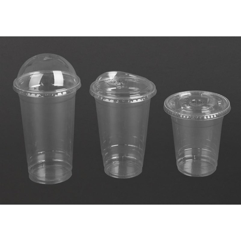 De rPET-bekers van Fiesta Recyclable zijn sterk en stevig, waardoor ze ideaal zijn voor alles, van zomerse bijeenkomsten en sportevenementen in de buitenlucht tot bruiloften, feesten en barbecues. Ze zijn perfect voor het serveren van frisdranken, smoothies, ijsdranken, bubble tea, ijscoupes, slushies en andere koude dranken. Deze bekers zijn gemaakt van gerecycled PET en helpen de hoeveelheid nieuw plastic die in uw bedrijf wordt gebruikt te verminderen. rPET is bovendien breed recyclebaar. Neem contact op met uw lokale recyclingbedrijf voor meer informatie over afvalverwerking. Verschillende deksels zijn compatibel met deze rPET-bekers: een plat deksel (HU062), een bolvormig deksel (HU063) en een deksel zonder rietje (HZ230).