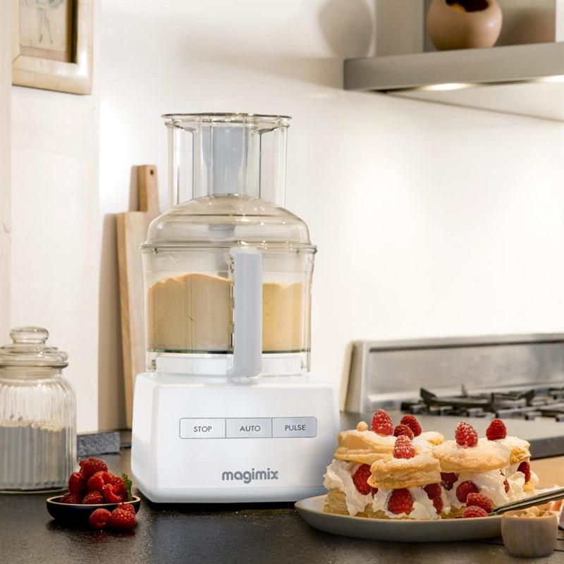 Een zeer veelzijdige en geluidsarme foodprocessor met eenvoudige bediening door middel van knoppen, waaronder een pulseerknop. De foodprocessor komt met een RVS sabatier mes (voor de mini- en grote kom), kneedmes, eiwitklopper, spatel, opbergdoos en 3 vaatwasserbestendige kommen: mini voor het hakken en mixen van kleinere hoeveelheden, midi voor snijden en raspen en de standaard kom voor hakken, mixen, kneden, raspen, snijden, emulgeren en kloppen. Verder krijgt u ook een blendermix accessoire die van uw foodprocessor een blender maakt.