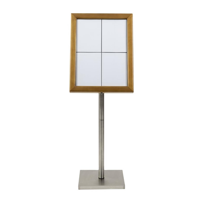 Securit 4xA4 teakhouten witte LED menukaarthouder met paal en voet