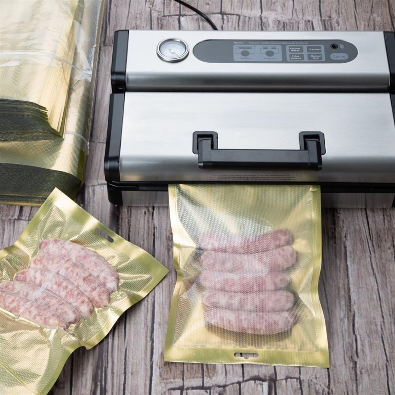 Met de hoogwaardige Vogue goudkleurige geribbelde vacuümzakken blijft uw voedsel langer vers en lekker. Speciaal ontworpen voor presentatie en opslag zorgen de zakken ervoor dat de inhoud beschermd blijft tegen invloeden van buitenaf, zodat smaak, textuur en voedingsstoffen behouden blijven, terwijl alles wordt gepresenteerd in een aantrekkelijke goudkleurige zak.